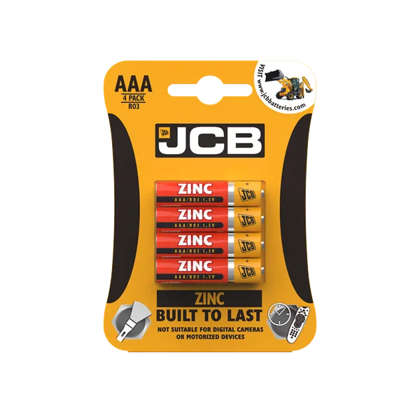 JCB R03 AAA Zinc Batteries 4 pack