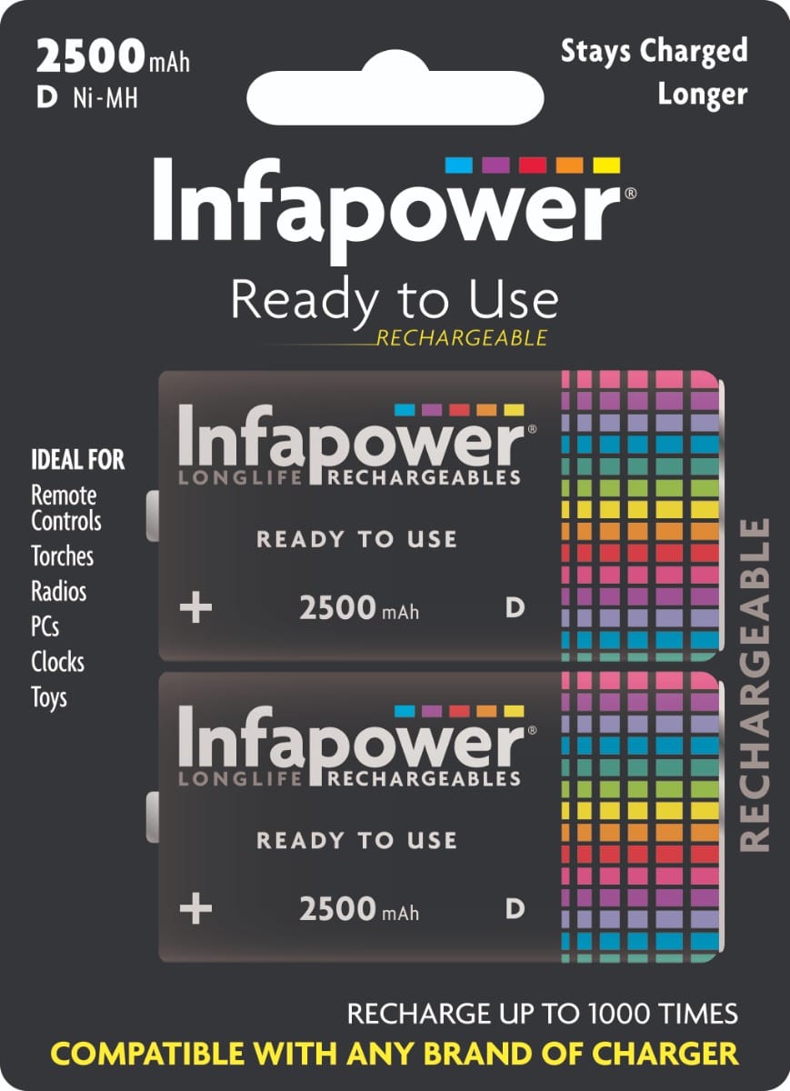 Infapower D Longlife Rechargeable Batteries 2500mAh 2 pack