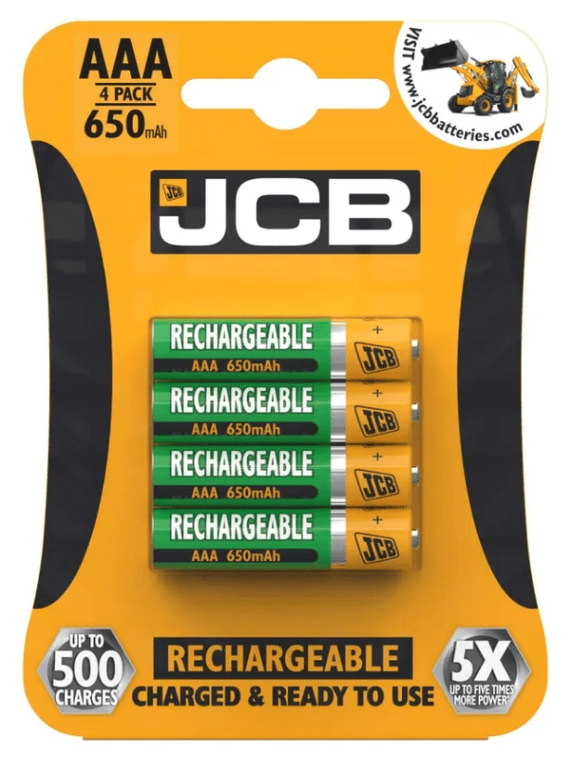 JCB Rechargeable Batteries AAA 650mAh 4 pack