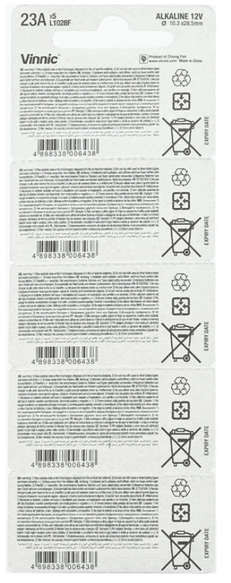 Vinnic L1028F 23A Alkaline Batteries 12V 5 pack